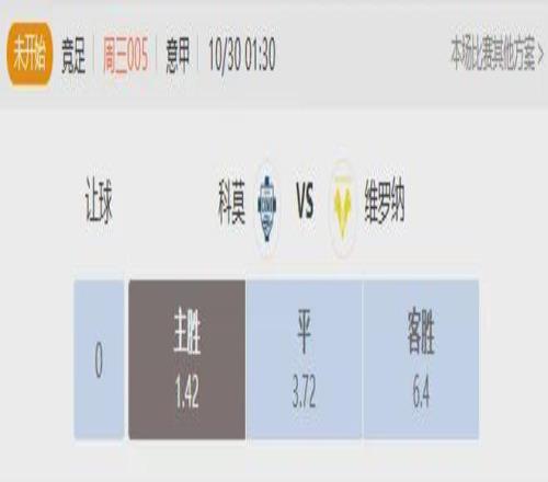 雙方上賽季交手中,科莫主場3:2擊敗對手,客場則與對手戰(zhàn)平,比較有優(yōu)勢。本賽季科莫實力和狀態(tài)都更勝一籌,本場勝算自然更大。機構初始給科莫1.0讓步居多,同樣更看好科莫勝出。