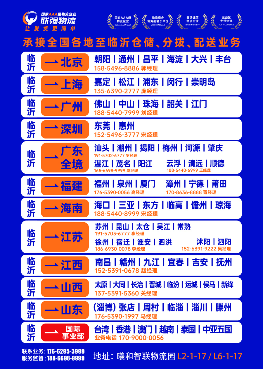 臨沂-玉林專線 臨沂-梧州專線 臨沂-賀州專線 臨沂-北海市專線 臨沂-欽州市專線 臨沂-貴港市專線 臨沂-防城港專線 臨沂-朝陽專線 臨沂-昌平專線